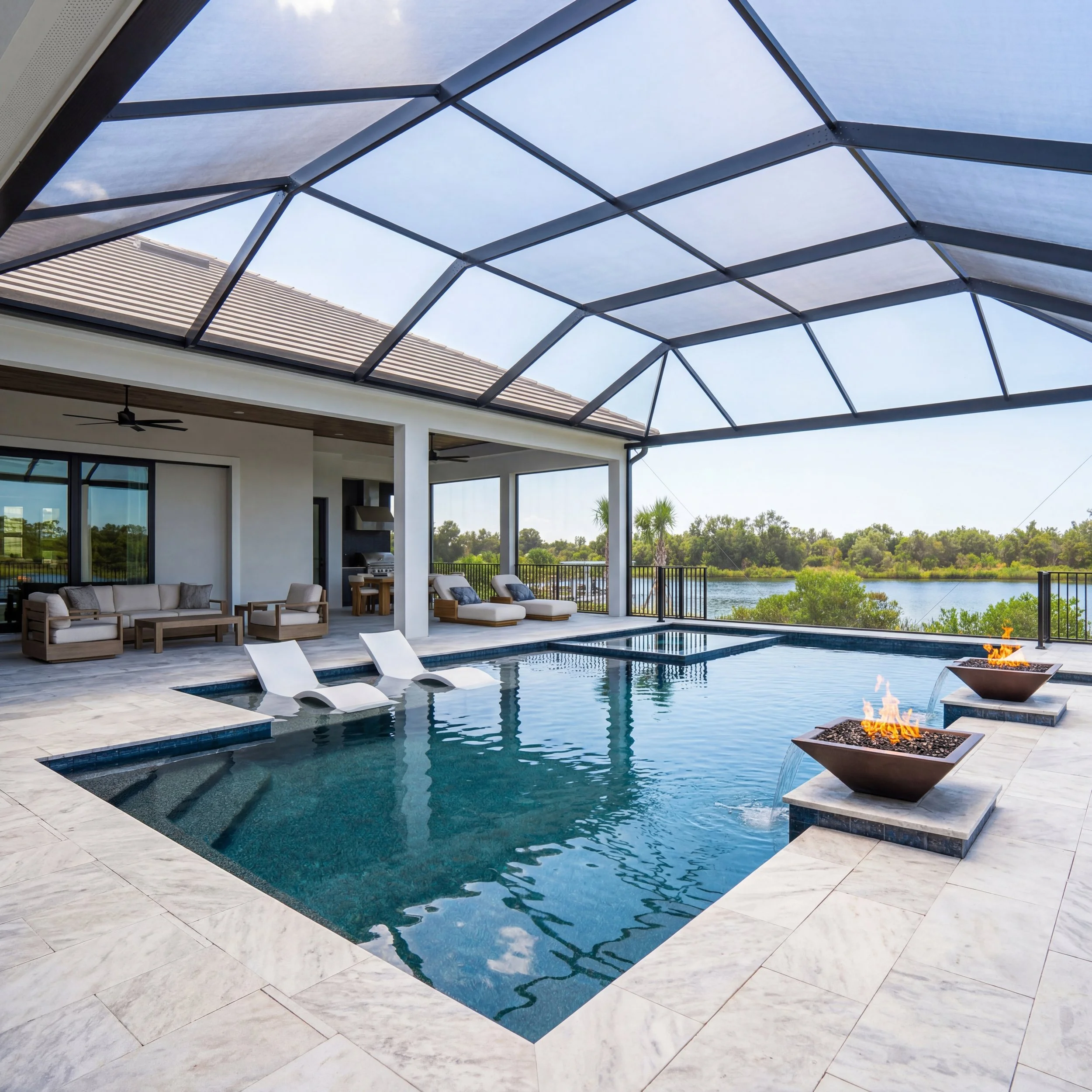 Deck & Surrounding Materials: Premium stone, designer pavers, natural stone coping, and non-slip surfaces