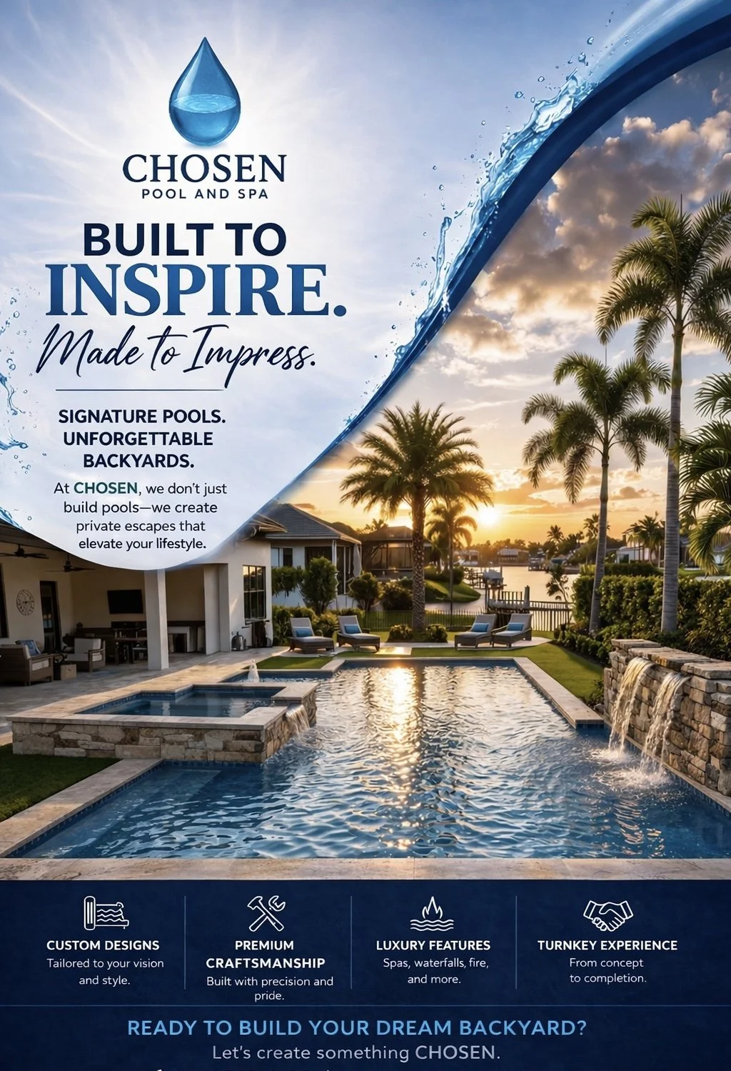 Chosen Pool and Spa exists to turn your vision into a reality. We design and build pools of lasting beauty, blending quality craftsmanship, thoughtful features, and timeless style. From concept to completion, we ensure every pool is a space for relaxation, entertainment, and cherished memories, no matter the budget.