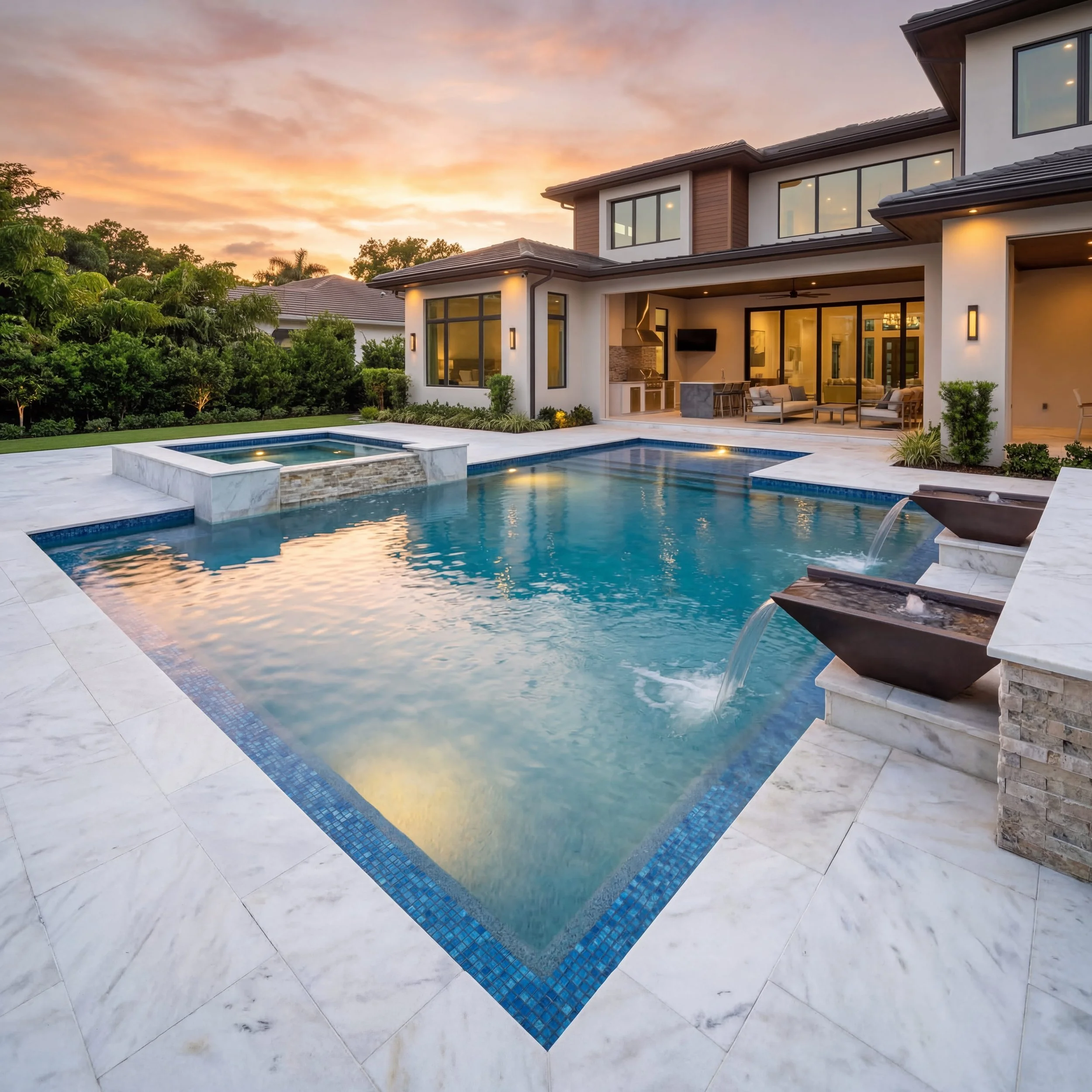 Premium finishes: tile, stone coping, and designer materials